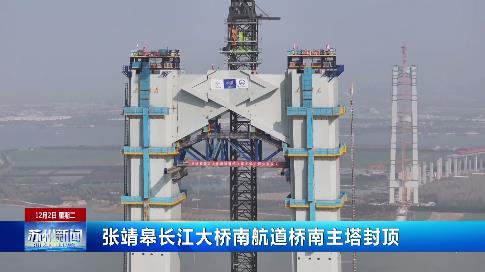 張靖皋長江大橋南航道橋南主塔封頂