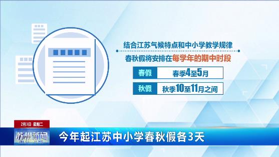 今年起江蘇中小學春秋假各3天